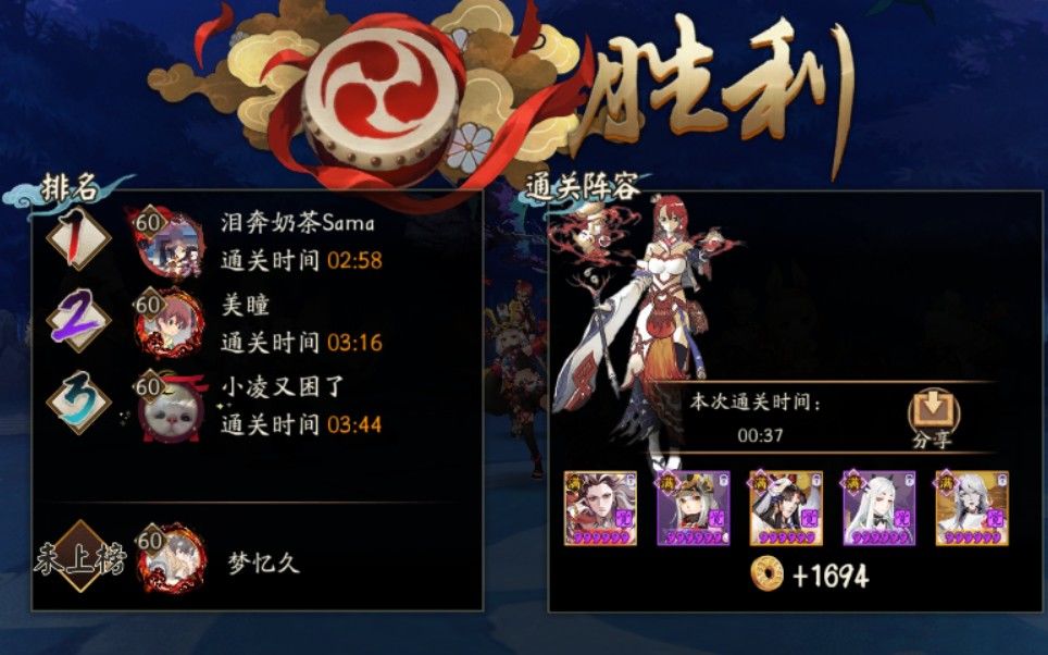 【痒痒鼠の日常】阴阳师吞镰铃千斗技记录