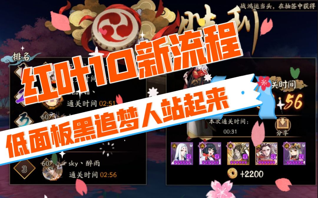 【阴阳师】红叶竞速10层熏黑云流程低面板黑3刀31s!光反29