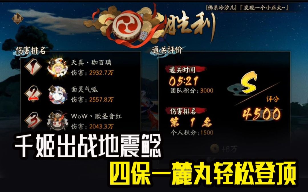【阴阳师】千姬出战地震鲶,4保1麓丸轻松登顶