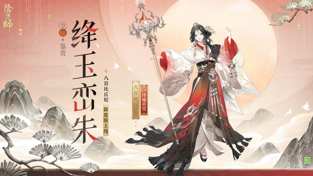 一袭绛影振袖挥杖,幽谷中传来吟唱的祷言。峰嶂泉涧,新生灵鸟一声唳鸣破空,唤醒了群山的生机。 「风林火山」限定系列皮肤第三弹即将上线! ※八百比丘尼新皮肤「绛玉峦朱」将于2月11日维护后 - 3月10日23:59限时上架皮肤商店,皮肤首次上架售价为98魂玉。购买皮肤还可额外获得八百比丘尼全新姿度「朱峦法杖·陨」(原“星陨”)、动态头像框「绛玉峦朱」。 ※皮肤最终效果请以游戏内实装为准,更多相关情报,