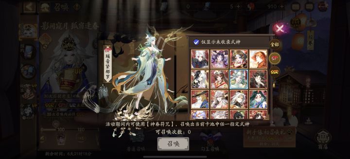 很久之前退坑了,臣服于葛叶妈妈的美貌来新区大冒险了现在还有预抽卡的天照+伊邪那美没取出来,有神眷,新区活动送ssr sp的那些活动还没做出来如果可以玩下去,我还需要利用活动补哪些式神呢?如果玩不下去,那我就神眷换葛叶去欣赏美貌了感谢各位
