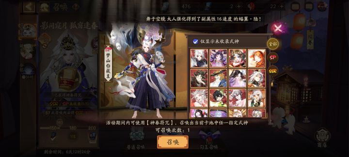 很久之前退坑了,臣服于葛叶妈妈的美貌来新区大冒险了现在还有预抽卡的天照+伊邪那美没取出来,有神眷,新区活动送ssr sp的那些活动还没做出来如果可以玩下去,我还需要利用活动补哪些式神呢?如果玩不下去,那我就神眷换葛叶去欣赏美貌了感谢各位
