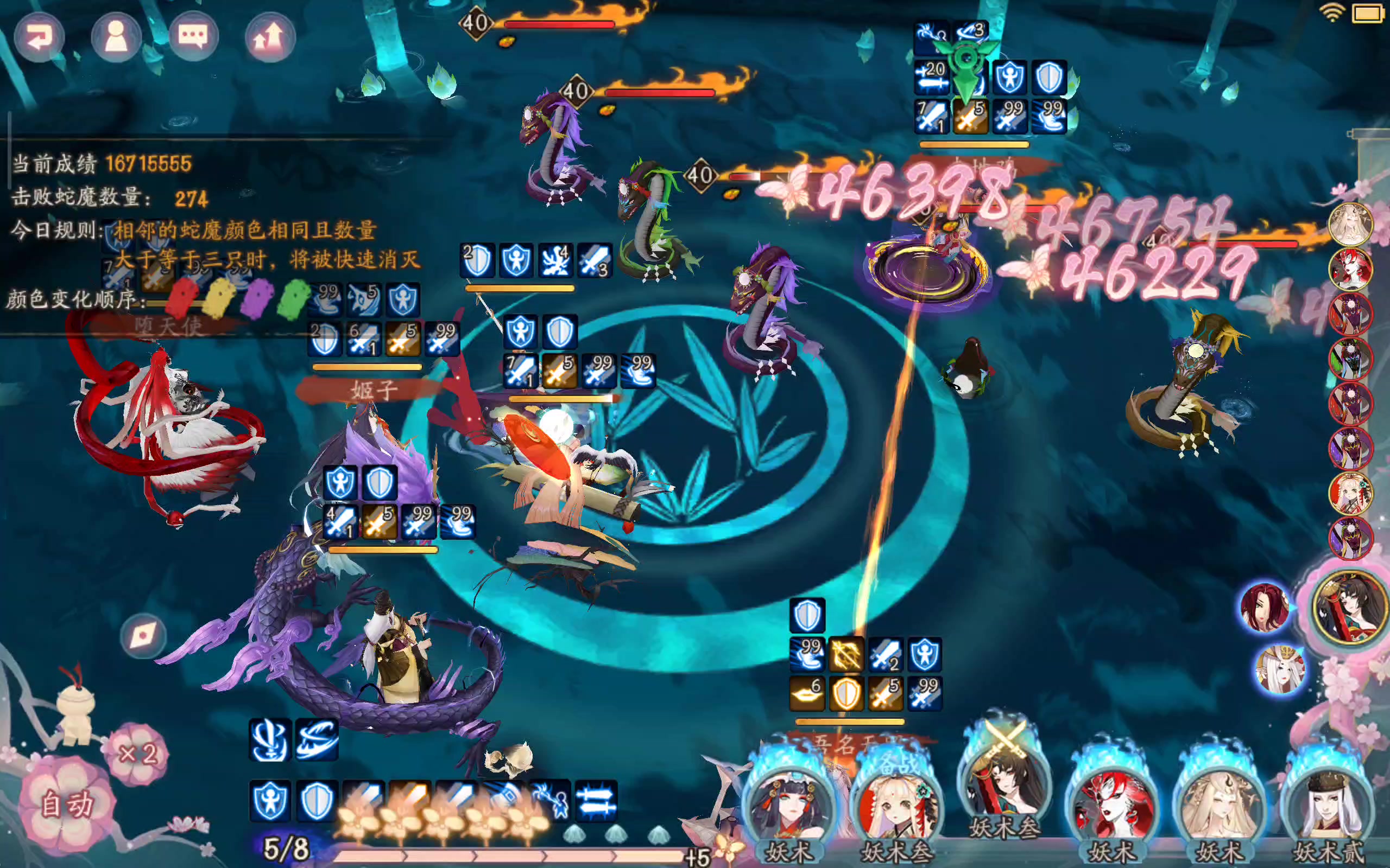 首先,我是闲鱼玩家,好御魂有限(只有散件速度能看看),不打斗技,日常打活动够用就行。真的比不上大佬的御魂强度练度(叠加,不要骂我菜) 官方攻略是千姬,小美,大缘,孔雀,绘世花鸟卷,没有大缘,替换的小缘没满技能,孔雀小美没满技能。 还有个攻略是大千姬,小美,大缘,天照,绘世花鸟卷。大千姬没有。 组不成所以根据我贫瘠的阴阳师知识,就因岳+天照+铃鹿+小美。 思路是,因岳增伤,小美控人稳定必上,铃鹿群攻