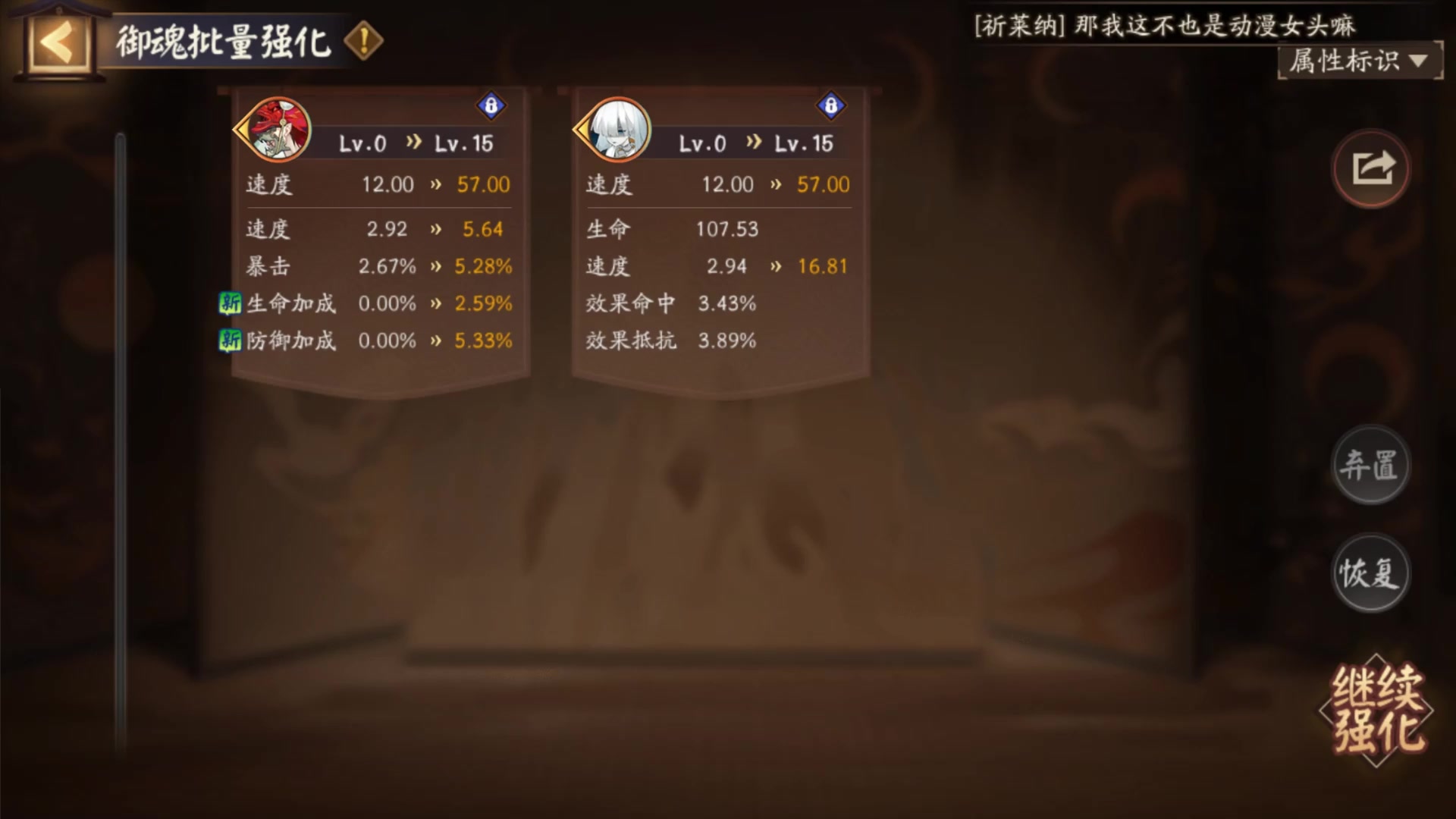 阴阳师:哈哈,我发誓这是我拥有的最快的头,16.81的狂骨双速度二号位,我解药何终于有头了,没想到惊喜就在不经意间出来了,之前我都一直不敢想这个号会出头,想不到啊想不到,不出则已,一出就一鸣惊人,直接接近真17,这是我拥有的最大的头,现在我一速157啦。 解药阮和解药猪最快的头分别是16.25和16.28,都不是很快,这个是最快的了。#游戏种草计划#攻略#游戏讨论#游戏安利#游戏福利#单机游戏