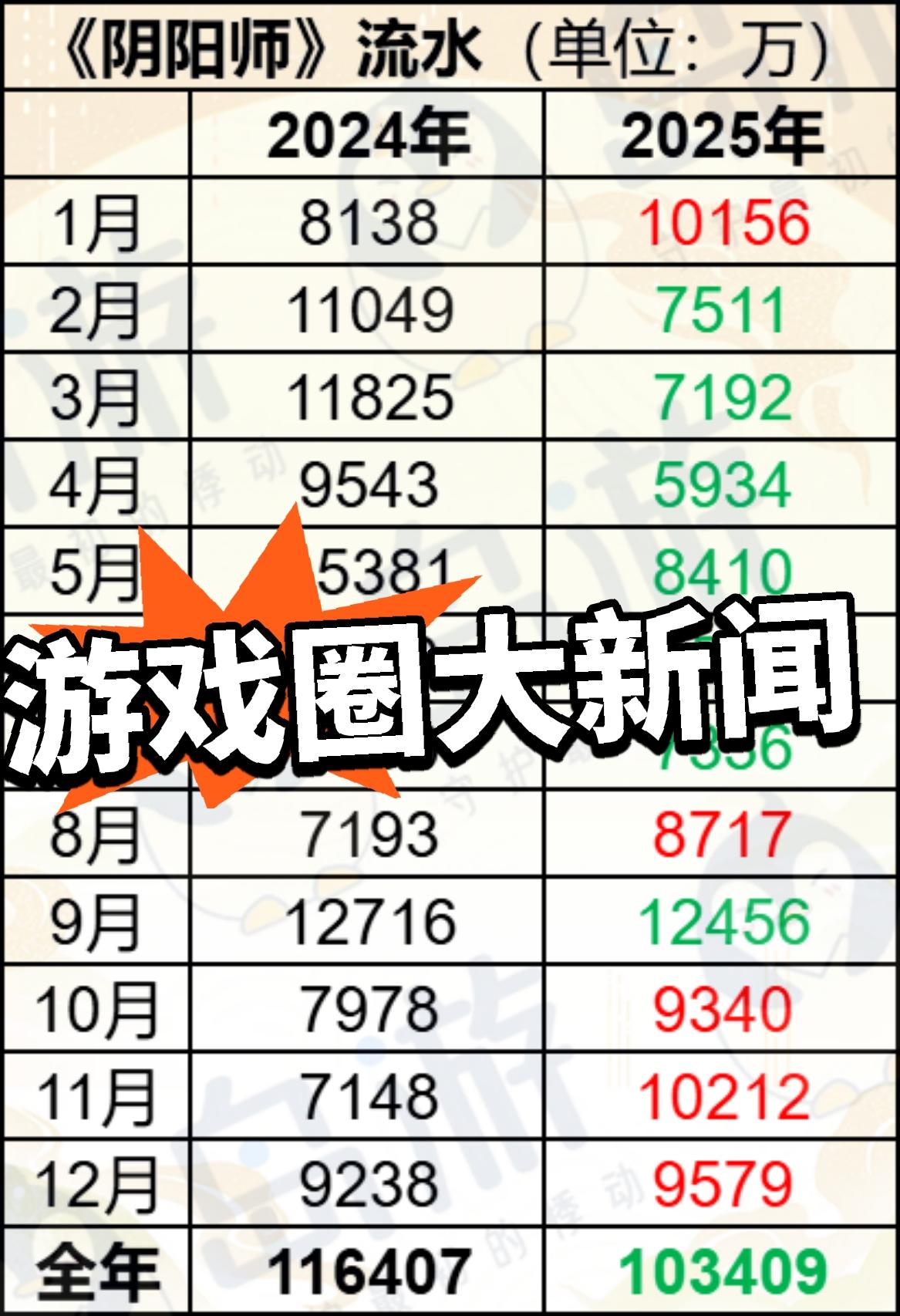 大的来了家人们!近日有大佬统计出了 阴阳师2025年12月流水数据。一公布,立马引来玩家热议!据博主参考第三方平台统计测算,25年全年总流水约为10.34亿元,而24年为11.64亿元。 12月游戏营收大概9579万元,在暴跌1.3亿后,这次总算强行稳住了局面。 和2025年11月比,当时有SP蝴蝶精加超鬼王双强加持,流水小幅降了6.2%。 但对比2024年12月就有进步,那会儿是SP星熊童