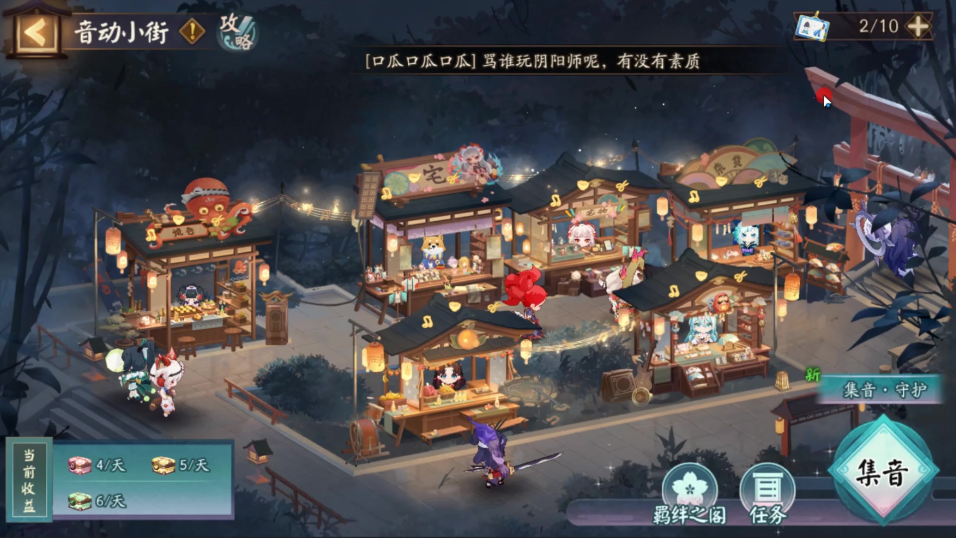 阴阳师:不知道大家玩音动小街了吗?记得玩一下哦,这个奖励还是不错的,放置店主每天就可以领箱子了,箱子里面有勾玉啊、体力啊、积分之类的东西。 而且里面的小不知火好可爱,总的来说玩法倒是挺简单的但是要手动,要手动这点比较麻烦,而且是限定时间内要一直手动,我号多,玩的不是很开心。#新游安利局#攻略#游戏推荐#游戏福利#单机游戏#游戏讨论