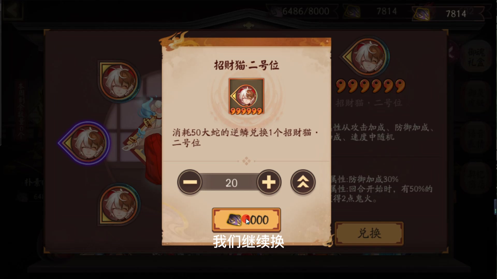 阴阳师:本大王花了8千蛇皮换招财猫啊,没想到才出了一个双速度,这个爆率不是要我的命吗?就一个胚子,献祭策划都难出啊,我的猫猫头啥时候才会出来啊?#游戏种草计划#游戏安利#游戏讨论#攻略#游戏福利#单机游戏