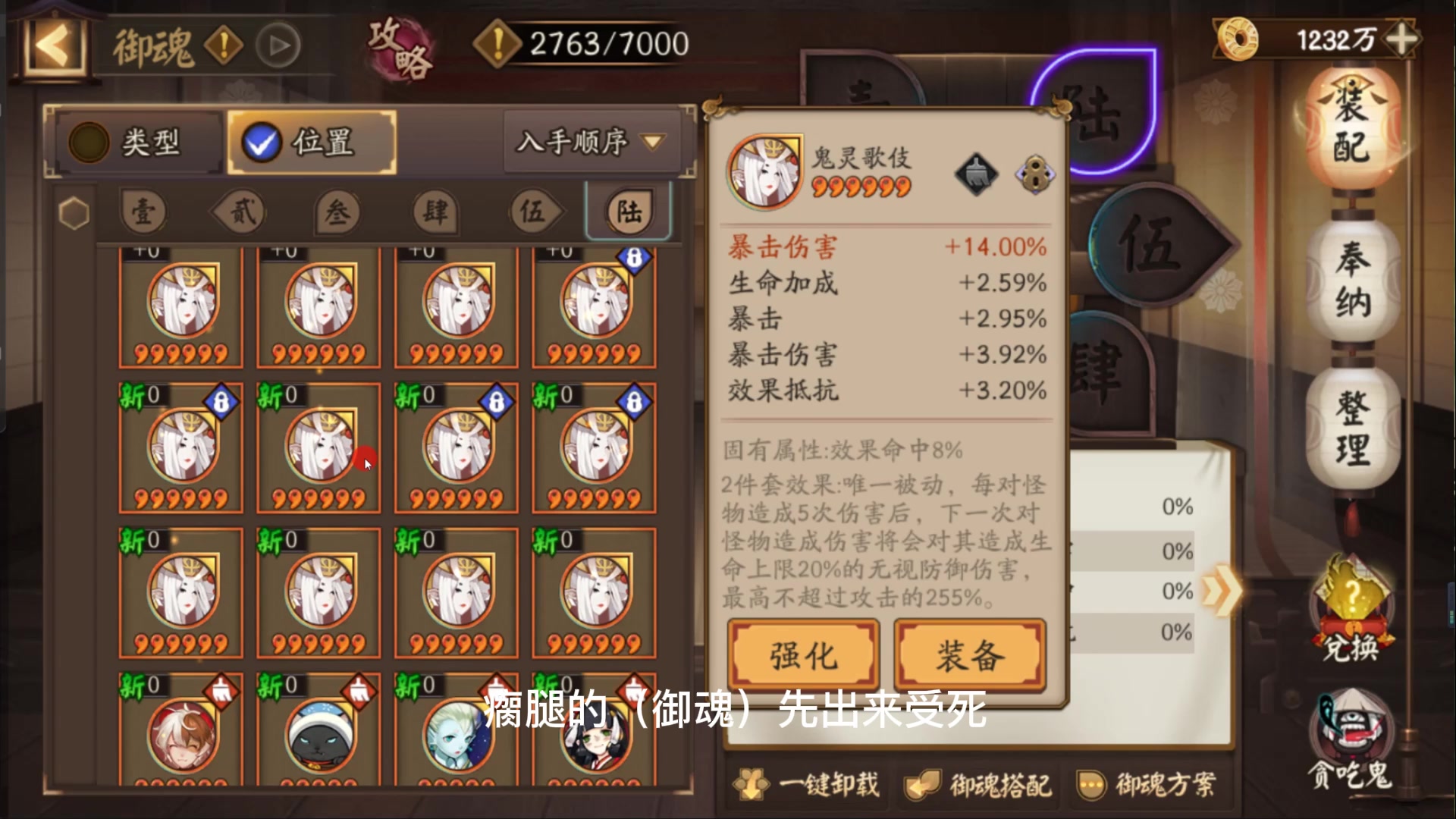 阴阳师:之前一把换到了6个极品六号位歌姬,不知道你们还记得不?现在强化一下。 我希望给我暴击加满爆伤加满,多出几个极品,这样子我就可以做大佬了。 可惜的是我没有出,我不快乐了。#游戏种草计划#游戏讨论#游戏福利#游戏安利#攻略#单机游戏