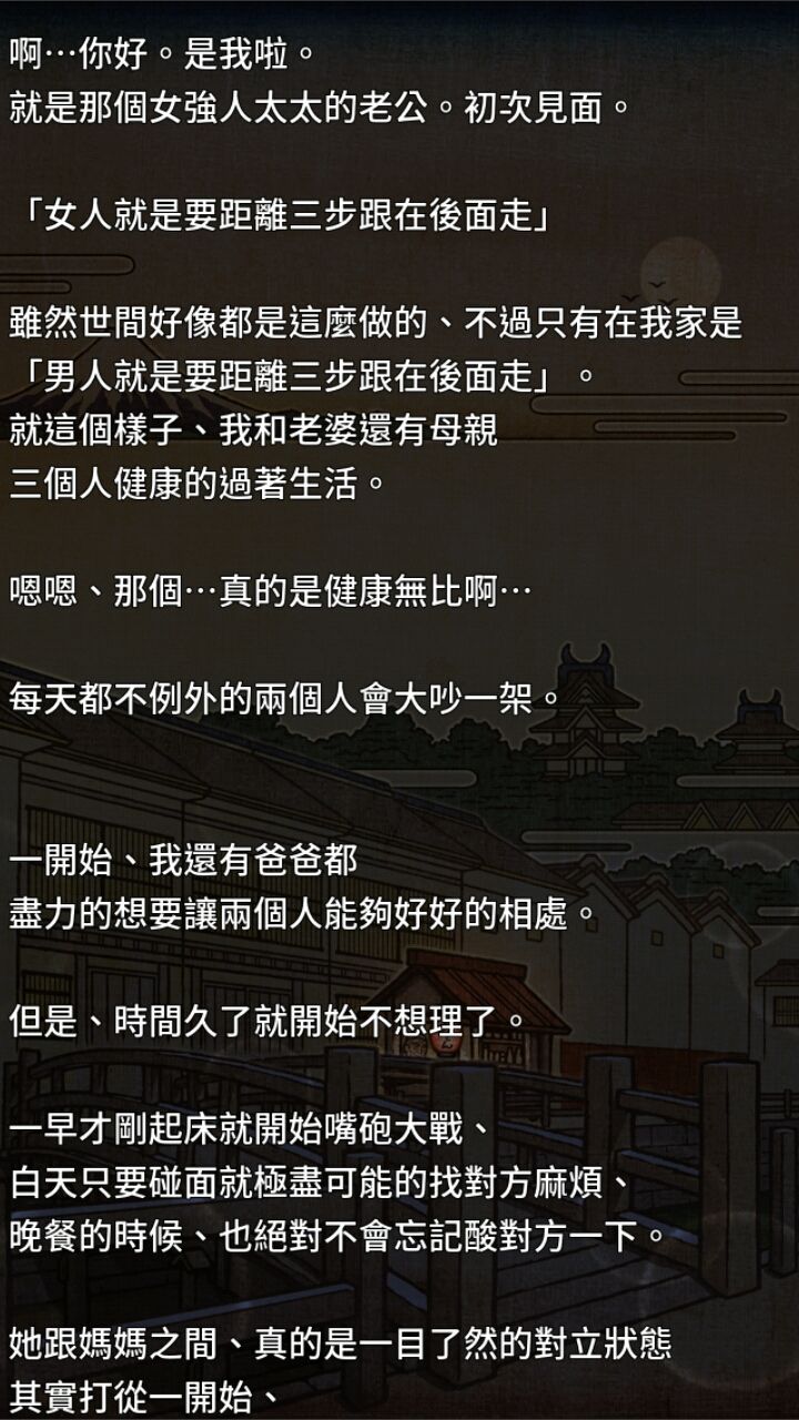 这个游戏呢,是我一天天玩过来的『因为完全不知道该怎么改时间』,感触也很多。婆媳之间的争吵,那种互不相容的感觉很真实。炊火师傅和徒弟的“情缘”,从不理解到相互理解。老实保守的作家为了追求真实的自我,拿下眼镜,做起了梦寐以求的游女。“狂爱”的少女追求恋爱,差点做出不可估量的举动,最终开始了自己新的恋爱。武士妹子对杀父仇人的宽容,以及独眼武士内心深处的愧疚感。花魁的思乡之情,和老八用中奖的钱