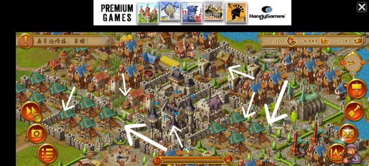 布局弄得差不多了,目前就墓地和练兵厂还没有弄,实在没有思路了。 后期最大的乐趣就是看小人忙碌了(一些布局风格来源于网络,再根据自己的发展需要做了一些修改)