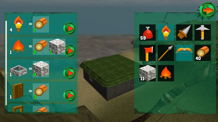 看看我做的房子我选择在海边可以看风景很棒吧门远处看就是介个样子我第一个晚上就是这里过的那我还去杀了狗熊,我有好多箭,我先把狗熊勾引到有舌头的地方,然后我跳上去,如果狗熊也来我就跳下来😂然后我发现我跳上去石头后狗熊上不来,哈哈哈哈,一顿射他😂😂😂介个就是我滴背包啦!其实狗熊杀死也没有啥好东西,也是肉和皮,和野猪和大森狼没有区别咯