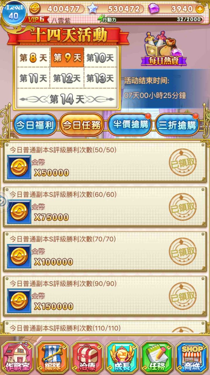 讲一讲玩了4天的一点点心得体会,本心得纯属个人经验,不喜勿喷1.前期可以钻石完全足够你把1、3、7天的英雄买下来2.点击一次作战室图标就会变成宅地,再点进去可以收取资源3.多去探险,探险可以得不少资源(个人建议探险的战斗关6白刃或3白刃2计谋基本要30级带两件垃圾武器就行,可以打到L4)4.建议除了刷卡,过图尽量在把经历用光了再去(虽然卡在4-4死活过不去)5.困难关卡卡片掉率比较高,前两章图很容