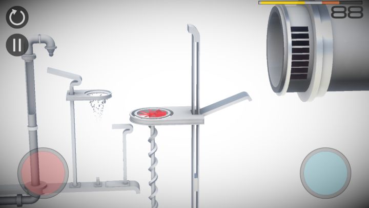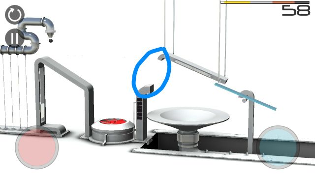键位设置如图,小球划落后按住红键让小球加速,然后立即放开(不然会因为时间问题而无法再次加速),之后按下蓝键(不能按太久,不然小球会被吹走,只要传送过去就放开),小球传送过去后立即放开蓝键按下红键,然后小球会落在红色移动板上,然后轻按蓝键把小球吹进导管中,完成