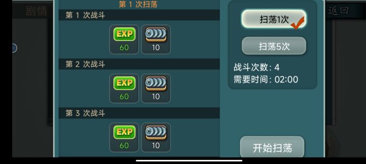34级通关主线。打不过的时候就扫荡挂机切到后台,等级不够~扫荡,金币不够~扫荡,装备碎片不够~扫荡,宝石不够~扫荡,战力上去就赢了