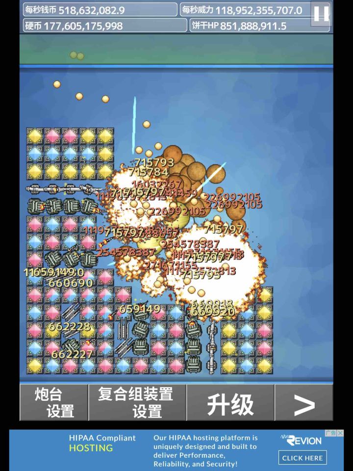 基本上通关了,除了几个特别昂贵的项目,还有一些需要次数的项目没有升级通关真的不需要50个小时那么久双加成是最强的加成项目,计算公式简化为1×(1+增加伤害×个数)×(1+增加射速×个数)其次到伤害,最后是射速,一个伤害加成后期能到300%,相当于一炮顶4炮,射速后期是80%左右,按100%计算,只是单位时间一炮顶两炮炮塔选择上,电阻可以完全替代非aoe武器的左右,单位输出是碾压的但是无法