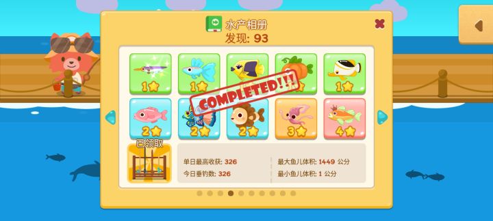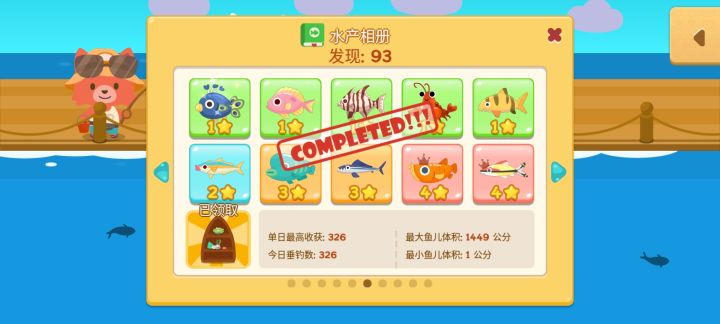 魚類收集度93/100 晾一下