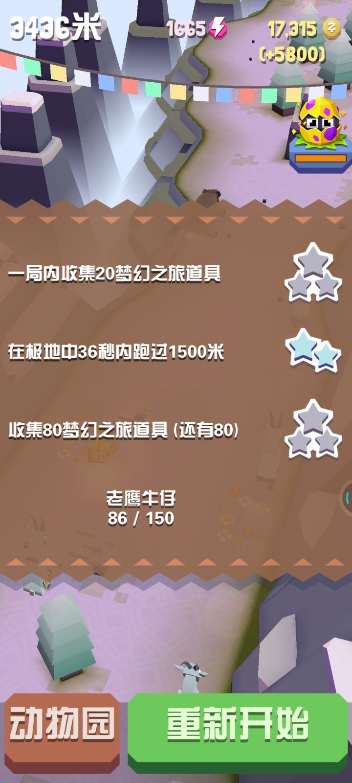 隐藏动物:(品质为特殊)1、机械秃鹫,1000米后山坡顶上随机出现。2、暗黑野牛,骑乘同一只野牛跑700米。3、特洛伊斑马,连续换乘7种不同动物。4、油炸狮,用同一只狮子连续吃30个动物。5、雄鸡鳄,每天3:00~10:00限时出现。6、鸭嘴河马,骑乘同一只河马跑1600米。7、恐龙犀牛,连续换乘7种不同动物。8、三嘴鸟,巨嘴鸟起跳100米并且安全换乘。9、罗宾汉鹰,悬崖边的远处
