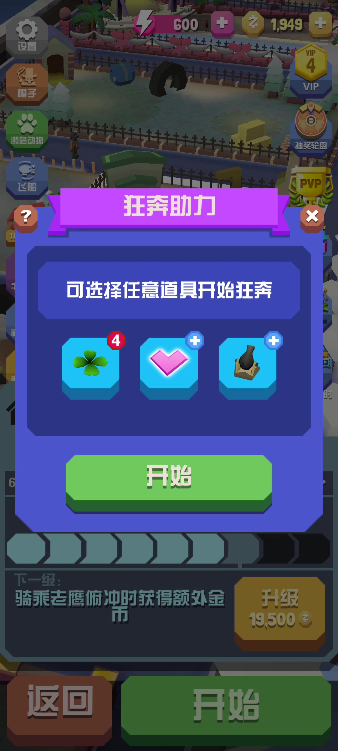 隐藏动物:(品质为特殊)1、机械秃鹫,1000米后山坡顶上随机出现。2、暗黑野牛,骑乘同一只野牛跑700米。3、特洛伊斑马,连续换乘7种不同动物。4、油炸狮,用同一只狮子连续吃30个动物。5、雄鸡鳄,每天3:00~10:00限时出现。6、鸭嘴河马,骑乘同一只河马跑1600米。7、恐龙犀牛,连续换乘7种不同动物。8、三嘴鸟,巨嘴鸟起跳100米并且安全换乘。9、罗宾汉鹰,悬崖边的远处