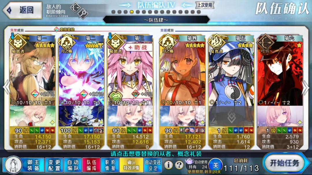 最近罐子都在打量子本,暂时录不了素材,就先发图,后面刷够量子了我找个机会发下视频吧 那么废话也不多说,下面直接看图就完事了 学姐必开被动五,必须开! …… 90星神秘主义者与魂之故乡 一宝百级学姐 满芙芙加满级福尔摩斯 阵容搭配:学姐+哈贝喵+杀狐+杀狐+梅林,换人服 …… 同样的阵容,但这次学姐换成百级二宝后,只需要带满破福尔摩斯,不需要升到百级 …… 90星久远的微笑 同样是一宝百级学姐+满福