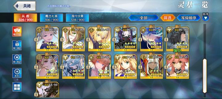 严格来说,也就自建11个月。五星从者31个。三大拐都有,rba之前捞了几百石,不出来。打手常用狂娜(三宝),因为是陪我开荒一路走过来的。金芙芙喂满。等级没120,因为狗粮要太多了,着不住学姐娄希汇呆这些都是一宝(汇呆还是这几天榨干石头抽的),可以打打活动,但还是喜欢用狂娜。毕竟从开头1.3开始用到现在,用习惯了。1.3之前一直用玛修和借助战主线现在