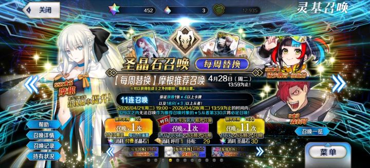 20个呼符+450石头,抽出两个摩根,阔以阔以了,再存一点,过两天争取三宝#命运冠位指定