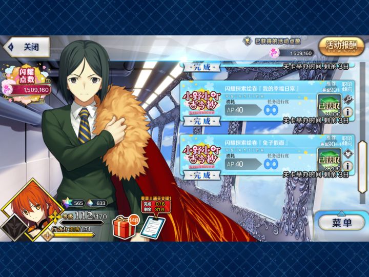 1.主线打到Lostbelt No.42.角色抽了一宝梅林和五宝学姐,歪了一宝太公望,前面运气还行,就是学姐最后一宝第328抽才出3.学姐养成情况,现在是100级,技能9/10/10,追加技能开了245,都是6级,指令卡带了一个10暴击威力,一个15暴击威力,不得不说学姐确实好用4.还有想请教一下,主线碰到那种有好几条命的怪要用谁打啊?复活石已经用完了5.最后求一下好友 100,152,6