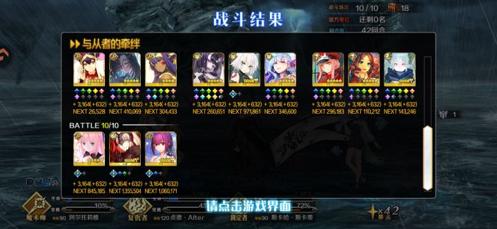 1.主线打到Lostbelt No.42.角色抽了一宝梅林和五宝学姐,歪了一宝太公望,前面运气还行,就是学姐最后一宝第328抽才出3.学姐养成情况,现在是100级,技能9/10/10,追加技能开了245,都是6级,指令卡带了一个10暴击威力,一个15暴击威力,不得不说学姐确实好用4.还有想请教一下,主线碰到那种有好几条命的怪要用谁打啊?复活石已经用完了5.最后求一下好友 100,152,6