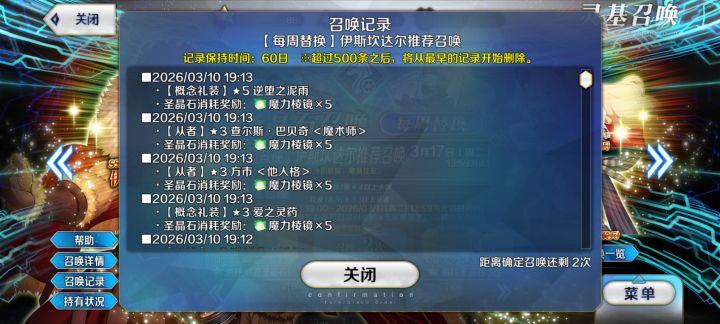 已经入坑将近一个半月,把初章跟断章全部打完了,然后第2大章还没开始,想做一些小小的总结。第一就是对抽卡的吐槽,330抽保底,靠!除了刚刚入坑的那一段时间抽c呆,直接30抽二宝,然后剑阶美杜莎看别人推荐最后一天抽了一宝,福袋出了c呆,新手福袋出的金闪闪,免费兑换换了诸葛,另外一个准备抽奥伯龙的福袋出了一个武田晴信,又丑又不强,就完全没有作为培养,第2部福袋抽出了王哈,中间的池子出于xp影响只抽了迦
