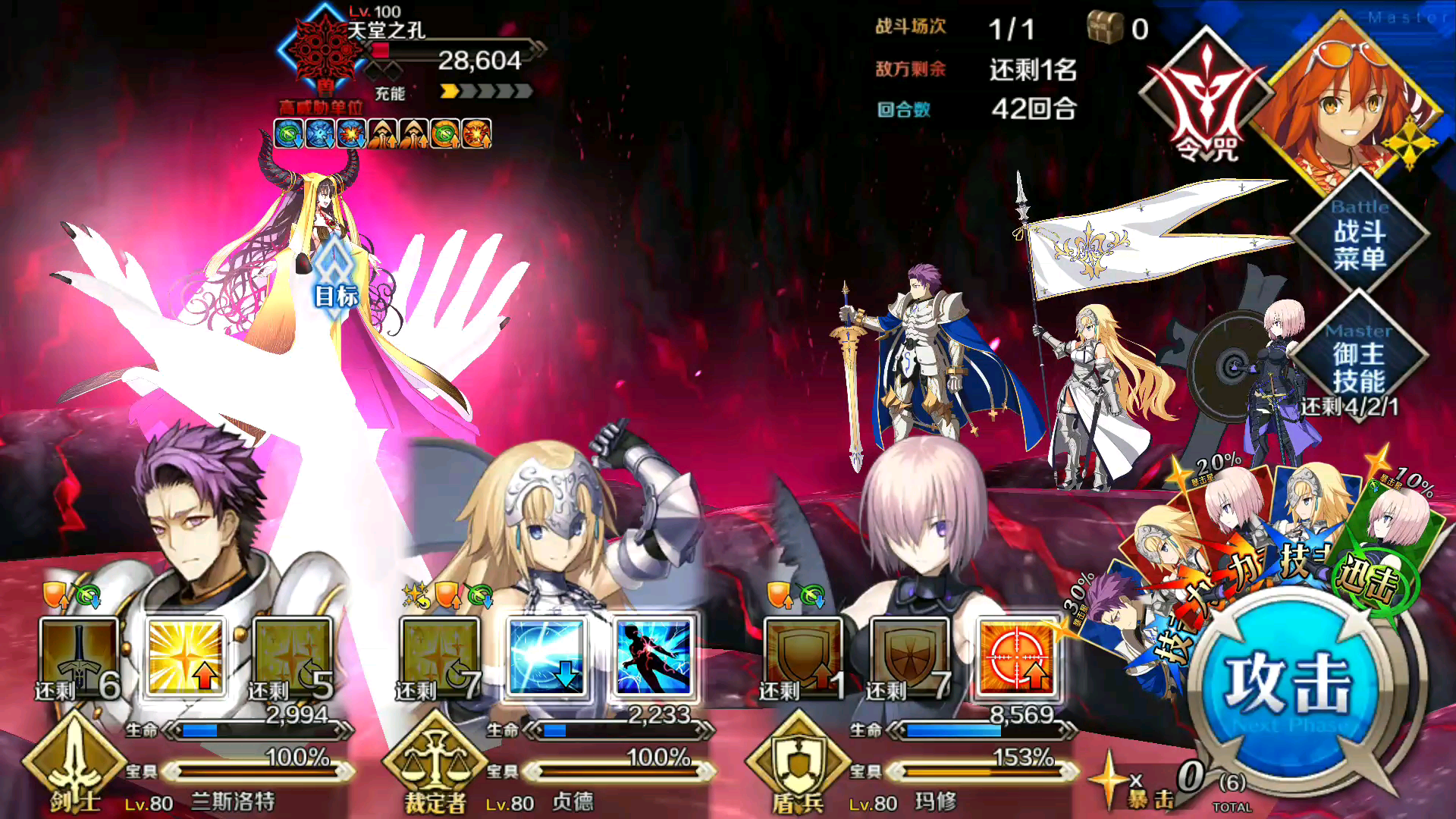 各位练了安徒生和玛修的同学可以直接抄作业,我试了两次,如果不想多做任务,推荐消掉5%np,10暴击星下降,技指令卡耐性,再买一个技指令卡耐性下降,基本能过,我试过两次都过了,😂第一次忘记录了,没有令咒稍微有点呛,不过也能过。