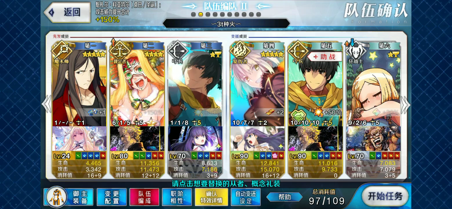 这个办法实现的成功率比较高,一回合发牌不好可以多打一回,幼贞需要自己打10NP,一二回合皆可补刀攒NP(可用艾蕾三技能提供np获取)对于全加成来说成功率已经非常高了。如果实在觉得不稳,可以换下一张加成礼装。