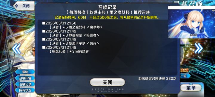 这个是我自己玩的号,自选拿的小恩(因为喜欢)不知道什么时候抽的闪闪和梅林