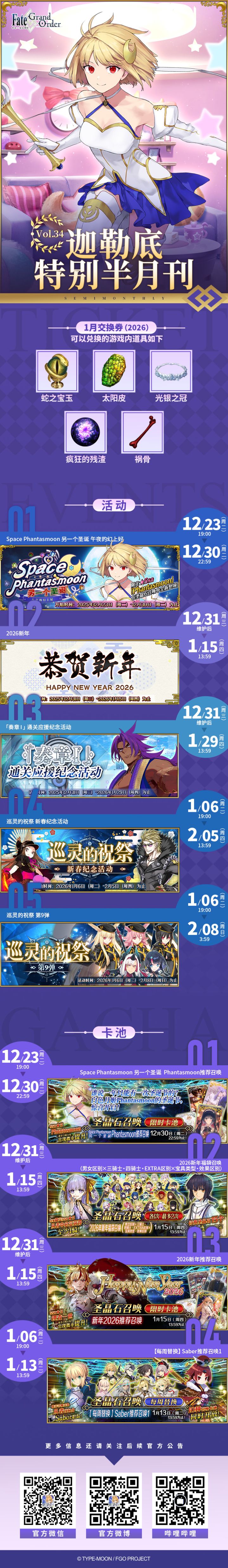 亲爱的各位御主,感谢各位御主对《命运-冠位指定》一直以来的关注和支持,为方便御主确认后续活动安排,《迦勒底特别半月刊》Vol.34已发布,详见下图。※各活动详情请留意后续官方公告。#fategrandorder #命运冠位指定 #fgo #fate