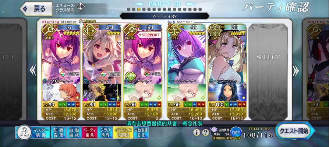 我们三个真的太强了() 水伊吹位置可以根据情况更换带给队友宝具OC提升以及CD减少的从者。比如单体绿卡水骑呆,他人格直接大保罗班扬,还有狂阶摩根本体
