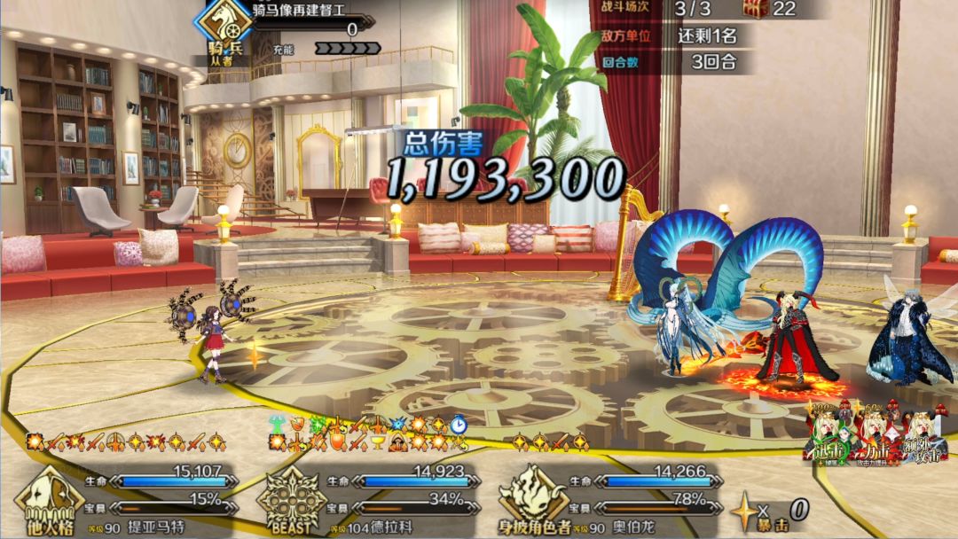 非常好的特攻,使我的兽尼旋转。 ps:这个90++没啥刷素材的必要,如有可能,请给助战C呆带上午茶加羁绊礼装