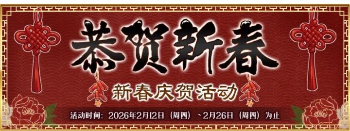 2月12日维护后,《命运-冠位指定》将正式开启2026新春庆贺活动,同步上线圣晶石赠送、登录奖励、关卡减负、养成倍率提升等多项福利内容。 新春庆贺活动时间为2026年2月12日维护后至2月26日13:59,符合条件的御主可在2月17日22:00后首次登录领取26个圣晶石。2月16日至2月25日开启七日累计登录活动,完成可获得限定概念礼装、呼符与黄金果实,2月27日至3月6日开启元宵五日登录活动