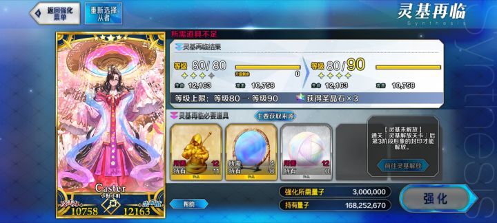 1.主线打到Lostbelt No.42.角色抽了一宝梅林和五宝学姐,歪了一宝太公望,前面运气还行,就是学姐最后一宝第328抽才出3.学姐养成情况,现在是100级,技能9/10/10,追加技能开了245,都是6级,指令卡带了一个10暴击威力,一个15暴击威力,不得不说学姐确实好用4.还有想请教一下,主线碰到那种有好几条命的怪要用谁打啊?复活石已经用完了5.最后求一下好友 100,152,6