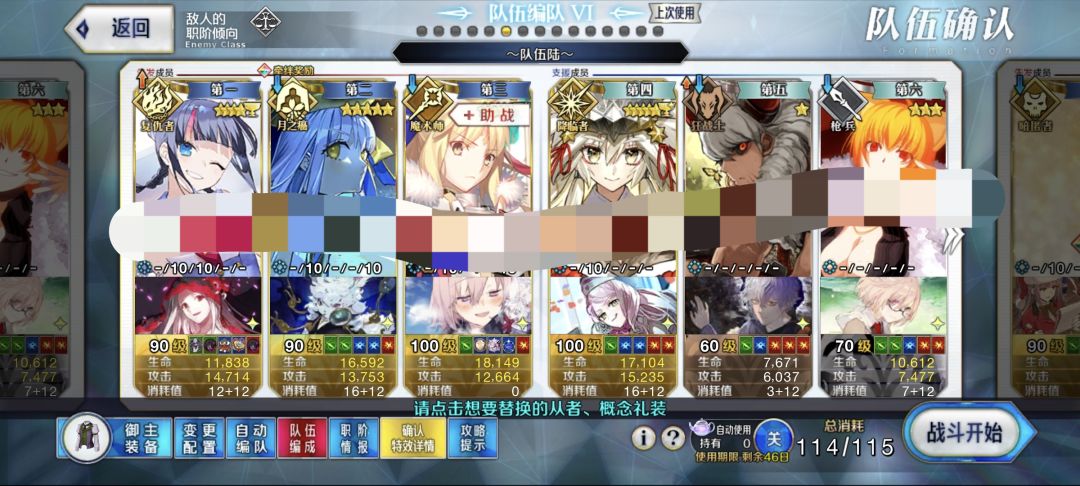 虽然汇呆是此次90++高光从者,但考虑到先前值班了很久的白纸化以及明年还要值班冠位狂,所以这里就用兽尼禄把她优化了。虽然要换人,但换的是活动50羁绊加成阿比,也不亏。第二面如果宝具最低随机数是要平a几下的,所以要先换阿比上来再开娄希的群体魔放,这样后面两下不管出那两张卡,在都是最低0.9乱数的情况下也是百分百过伤害线。