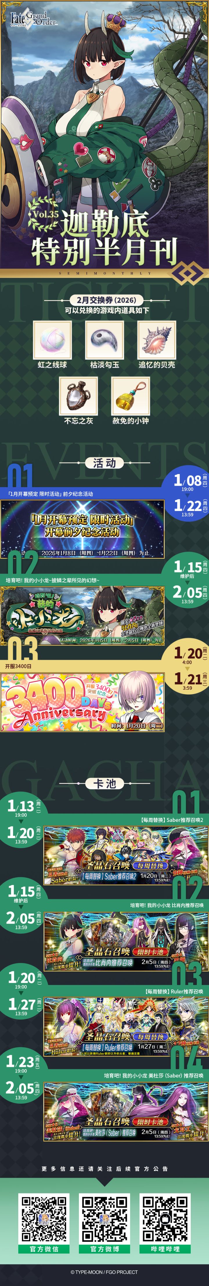 大家意外(可能)都见过的 某个纹章原型的龙或蛇。 「我,我已经受够被讨伐了! 所以这次我会努力成为一名优秀的社会人士!」 全新登场的限定从者「★5(SSR)比肖内」推荐召唤将于2026年1月15日(周四)维护后开启! #命运冠位指定 #fgo #fategrandorder #fate