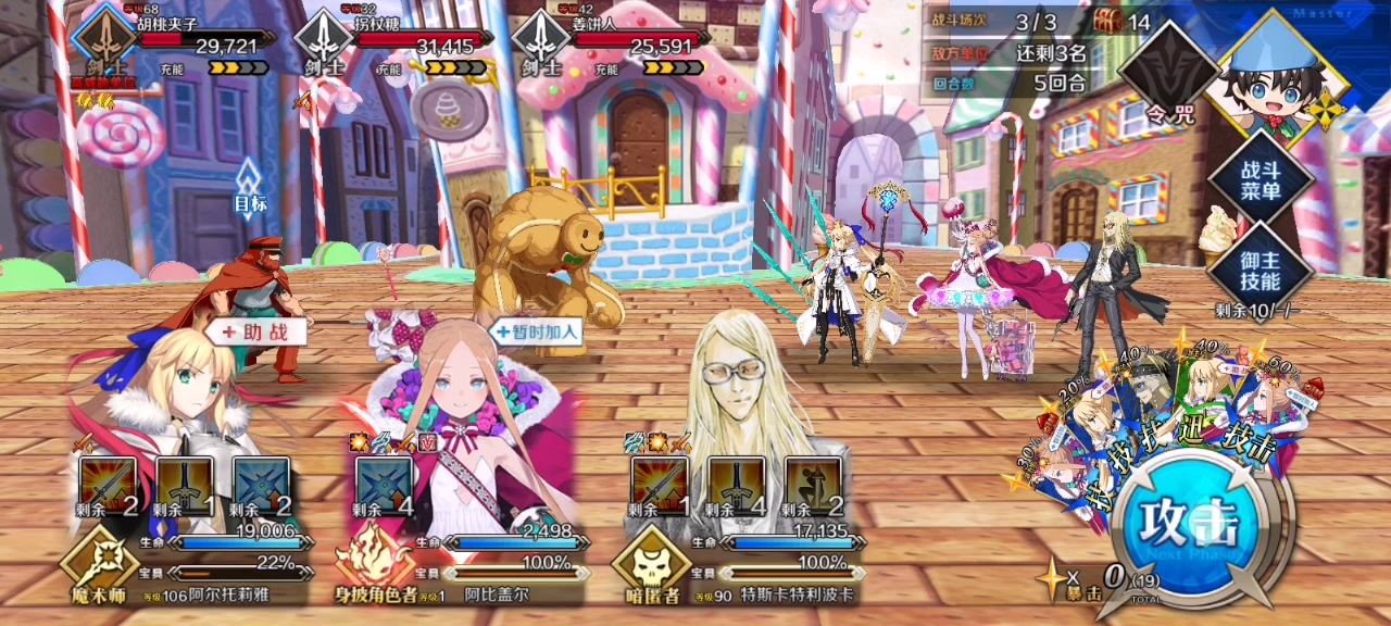 虽然汇呆是此次90++高光从者,但考虑到先前值班了很久的白纸化以及明年还要值班冠位狂,所以这里就用兽尼禄把她优化了。虽然要换人,但换的是活动50羁绊加成阿比,也不亏。第二面如果宝具最低随机数是要平a几下的,所以要先换阿比上来再开娄希的群体魔放,这样后面两下不管出那两张卡,在都是最低0.9乱数的情况下也是百分百过伤害线。