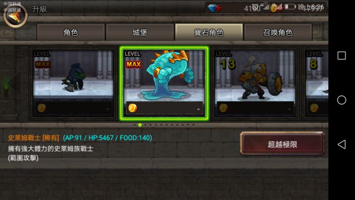 前期萌新期需要一个肉盾,普通肉盾兵太差。后期无所谓。个人所爱史莱姆战士。补图对比可见普通升至20级也不如10级稀有角色,但是一但到了后期,金币极多,最后一章节最后一关,一次十几万,刷上一百次,就能抽一百多次。所以从未来发展来看普通角色不比稀有角色差。后排射手类,普通射手使用即可,只用做过渡使用。先发前排后,在粮食不足以使用高等角色时充当伤害补充。或者开局先手肉盾,后发射手,射手主力,前排只要