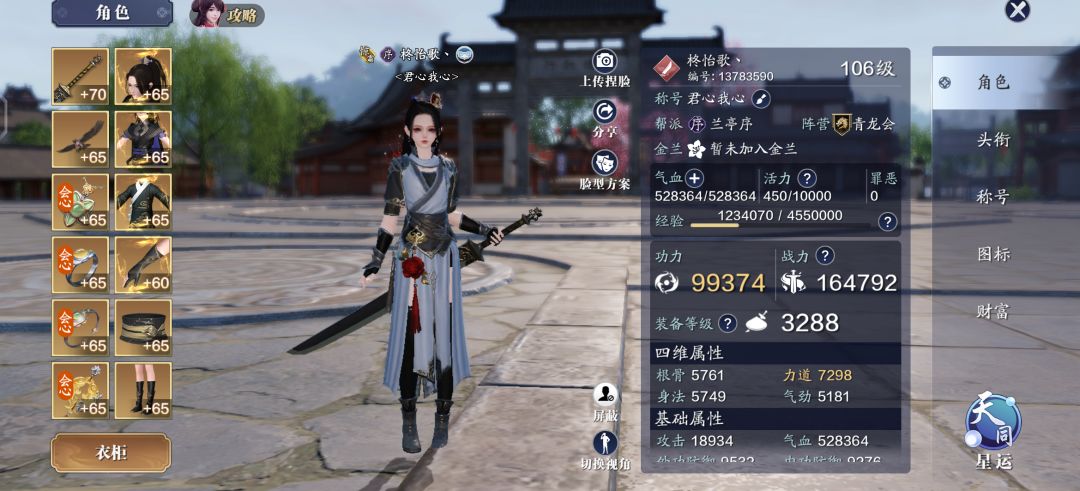 天涯明月刀萌新不氪金30天第二十六天攻略: 将每日必做做完升到106级,打开铸造新铸造一件106级的装备,其他的尽可能强化。 伙伴金色伙伴112级,紫色伙伴111级。 琅纹一定要培养,这个等级琅纹可能跟不上。