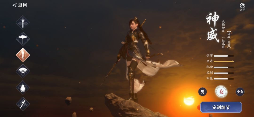 职业属性关系图:攻击>气血>力道>身法>气劲 职业技能增益属性: 神威因为特殊技能段龙枪所以他的主要伤害来源是攻击 琅纹推荐: 攻击装备琅纹: 第一档:混沌【上清】+天【云】+天【雨】+天【星渊】+天【皇天】 第二档:混沌【上清】+天【云】+天【星渊】+天【玄宙】+天【辉宸】 第三档:混沌【上清】+天【玄宙】+天【辉宸】+混沌【道心】+混沌【神人】防御装备琅纹: 第一档:混沌【玉清】+地【木】+地