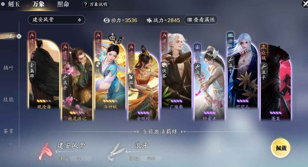 各位少侠大家好,我们又见面了。上一期我们浅谈了一下刻玉方案对输出的影响,那么除了刻玉之外,万象卡牌的搭配,以及万象技能的选择同样重要。那么本期我们就以话本环境的输出为基础,说一下万象卡牌的搭配以及技能选择吧。 一、万象羁绊 万象羁绊大家并不陌生了,分主羁绊、副羁绊以及特殊羁绊,主羁绊的激活效果最低为3张,副羁绊的激活效果最低为2张,特殊羁绊的激活效果是1张。 对于专注于副本输出的少侠来说,特殊羁绊