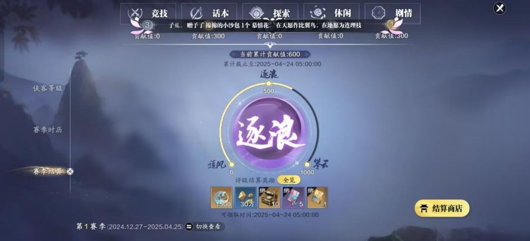 天刀少侠们好呀,天刀赛季版S2赛季即将上线,在S1赛季结束之际,这些必做事项千万别遗漏。 Tips1:赛季结算贡献值 S1赛季结算的贡献值如果距离攀云不远的抓紧时间赶一赶! 以下为赛季结算奖励: 攀云:月灵石*2000;碎金*50万;神品璞玉宝匣*10;万象盈虚永恒*5;万象·朔望生灭*1;天涯彼端头像框;天涯彼端名片;赴天涯图标; 逐浪:月灵石*1500;碎金*30万;神品璞玉宝匣*10;万象盈