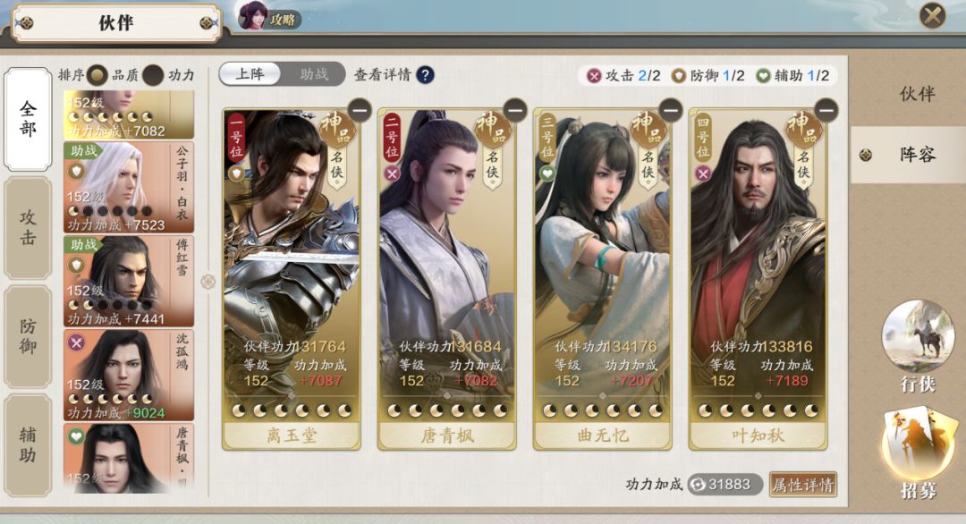 各位新区的萌新大家好啊!初入江湖有个伙伴最为重要,伙伴不止能为少侠提升功力,还可以在战斗中候释放技能以及辅助BUFF增加少侠的属性。随着突破等级的提升,还可以升级共修技能,共修技能可以直接增加少侠的属性点,不需要上阵。 当伙伴突破至满级时,更可以获得合击技能,更近一步的提升少侠的输出能力。 一、金色伙伴选择 这里我们先抛开神侠不说,先来说一下神品伙伴如何选择吧。 (1)神品伙伴过渡搭配 伙伴搭配: