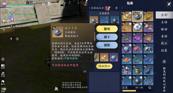 各位少侠大家好,我们又见面啦。上期在天芒进阶篇攻略里介绍了各种道具,那么本期就来测试一下这些道具的作用,看看能击败几个秘境首领。这一期实战篇也是天芒攻略的最后一期哦,希望各位少侠看完都能轻松击败秘境首领。道具携带:破片手雷高级强化符:爆炸陷阱:短剑:武学方案:进入秘境后,方案会自动切换为绝顶方案,所以各位少侠记得在绝顶方案里把副本装备,副本刻玉,卡牌技能都带上哦。副本刻玉我们首要选择