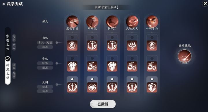 各位少侠大家好,我们又见面了。上一期我们说了移花的木桩连招教学,不知道少侠学了之后有没有提高木桩伤害?本期我们来说一个扛着大刀打天下的职业——神刀的木桩输出教学。一、技能天赋选择神刀输出天赋有两套:第一套为全部话本天同天赋,第二套为风雷一剑技能选七煞天赋,其他选话本天同天赋,在这里推荐第二套全部话本天同天赋,伤害会更高。二、刻玉选择刻玉不多说,还是老样子选择把琢雅,莹煌,振珩,重环四个技能