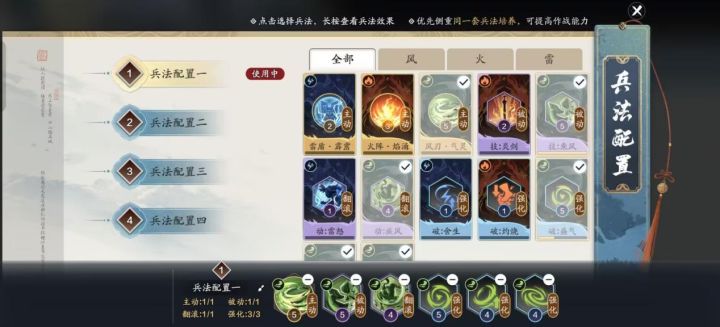 天刀手游赛季版的纸上谈兵的机制和经典版的玩法规则大致相同,有差异的地方主要是奖励的变化。今天我们接着帮派入侵玩法的开启总结一些能提升效率的关键点。Tips1:兵法优先集中一种升至最高级纸上谈兵并不是需要所有的兵法都提升起来才能打,相反重点提升一种兵法,然后只挑战相应的关卡在前期效率更高。雷/火/风兵法整体效果都比较接近,所以前期只升一个即可,后期等资源够多了之后,慢慢尝试新的兵法寻求更多选择。