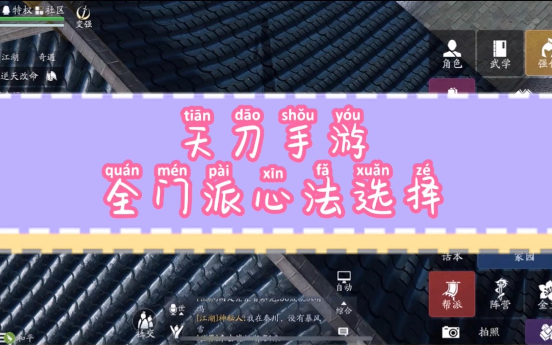 【天刀手游】全门派心法选择,看了不花冤枉钱!