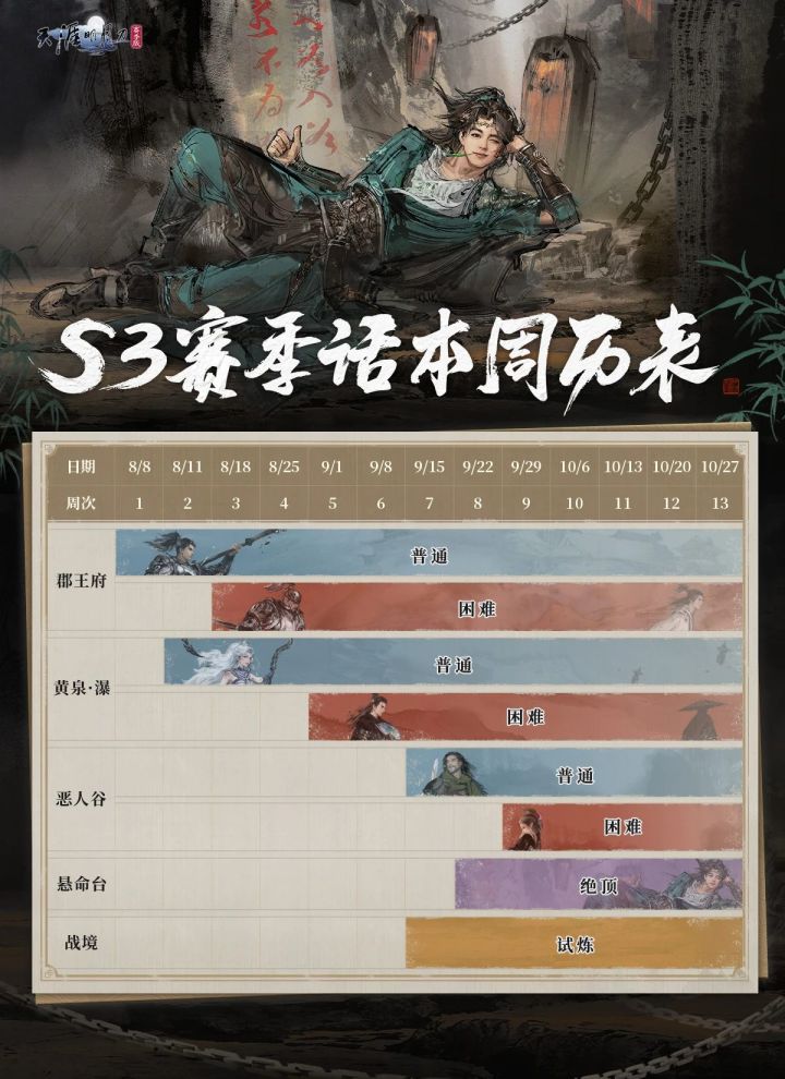 报告少侠!!!江湖传来急报——东平郡王府叛乱!!曾为大宋征战沙场的郡王赵允弼率精锐起兵谋逆,据守郡王府负隅顽抗!形势刻不容缓,急需各路英豪火速支援!此去危险万分,若少侠意欲随离盟主前往,还请收下先锋官刀妹这篇平叛锦囊,内藏王府战局详析与关键人物秘闻,助力少侠知己知彼,克敌制胜!S3赛季在话本节奏上跟随赛季节奏调整和少侠体验进行了相应优化,并带来丰富主题首领、各类趣味机制供少侠挑战,在赛季